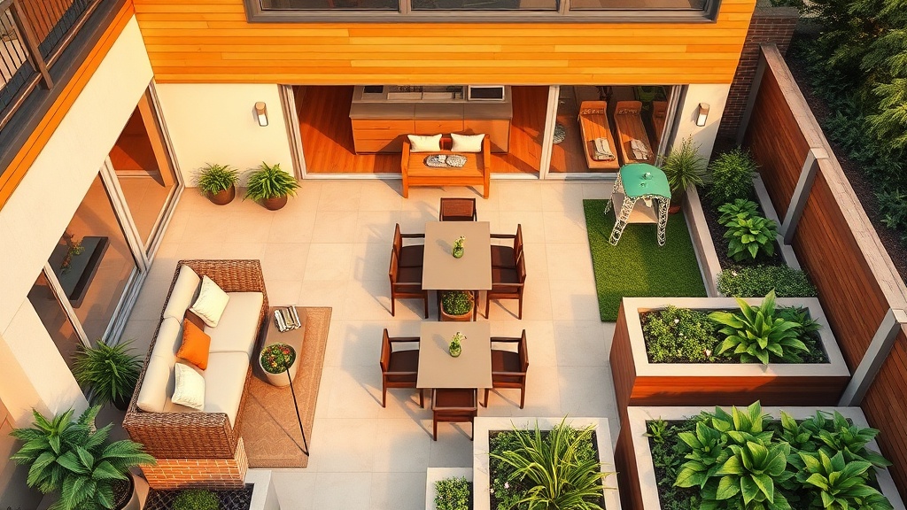 - חלוקה לאזורים: תכנן אזורים ברורים – פינת ישיבה, פינת אוכל, אזור משחקים, גינה ירוקה.